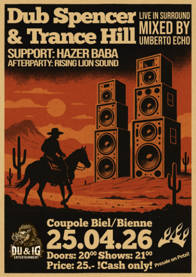 LIVE: Dub Spencer & Trance Hill (Live in Surroud / Mixed by Umberto Echo) Support: Hazer Baba Afterparty: Rising Lion...